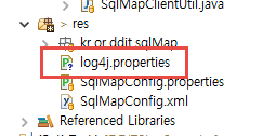 res 설정파일이 담겨질 소스파일 폴더에 log4j.properties를 추가합니다.
