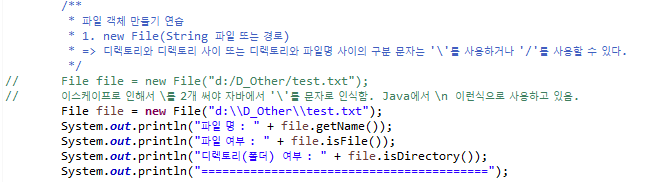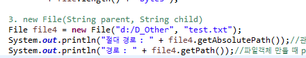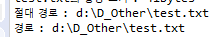 ํ์ผ ๊ฐ์ฒด๋ฅผ ๋ง๋ค์๋ค๋ฉด D๋๋ผ์ด๋ธ์ D_Other ํด๋์ test.txt ๋ผ๋ ํ์ผ์