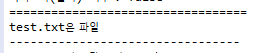 ๊ฒฐ๊ณผ์ ์ผ๋ก test.txt ๋ ๋๋ ํ ๋ฆฌ๊ฐ ์๋ ํ์ผ์ด๋ผ๋ ๊ฒ์ ๋๋ค.