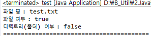 ์คํ ์ ํ์ผ์ฌ๋ถ์ ๋๋ ํ ๋ฆฌ ์ฌ๋ถ๋ฅผ boolean ๊ฐ์ผ๋ก ๋ฐํํ๋ค.
