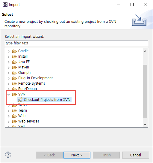 이클립스 SVN 파일 불러오기