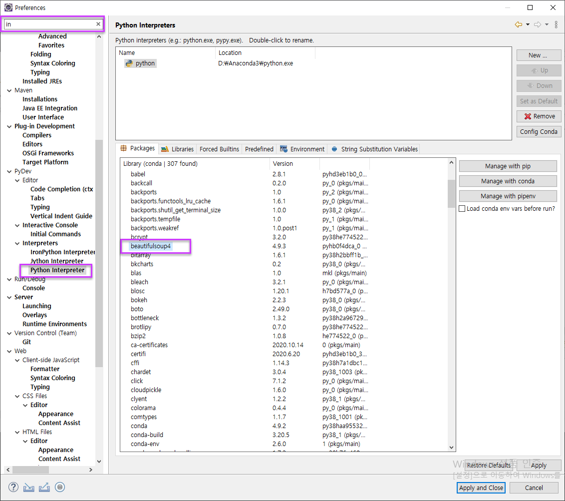 파이썬 설치 및 이클립스 설치 후 환경설정