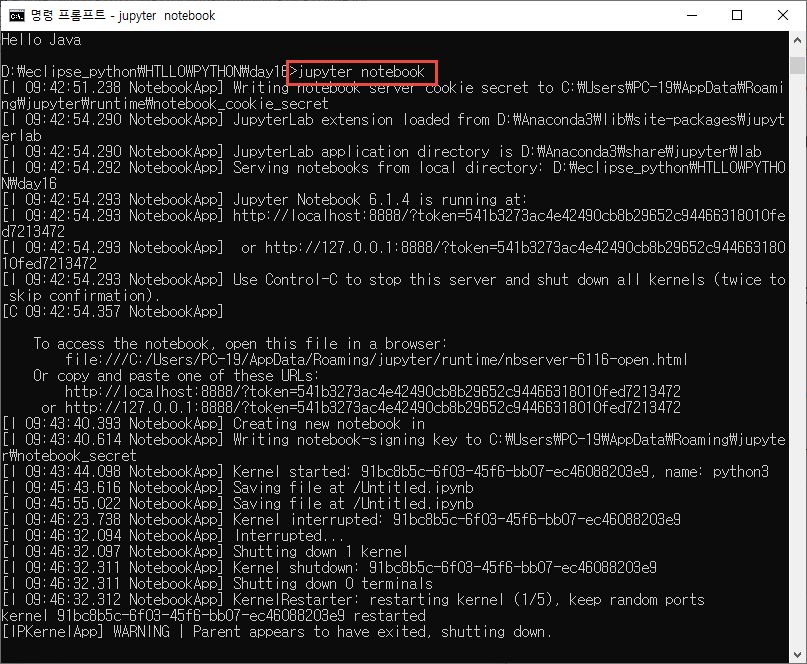 day16에가서 새로고침을 하면 Untitled.ipynb 가 생기는데 이것이 jupyter notebook을 돌린 파일이다.
