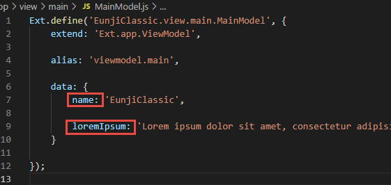 MainModel.js 내 구성된 'data' 속성의 키 값