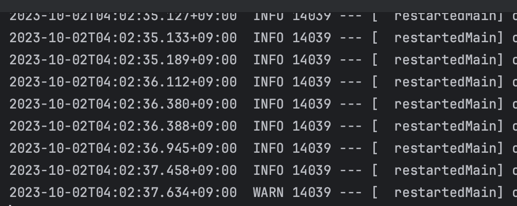 빌드를 실행하면 [restartedMain] 키워드를 가진 로그가 보인다.